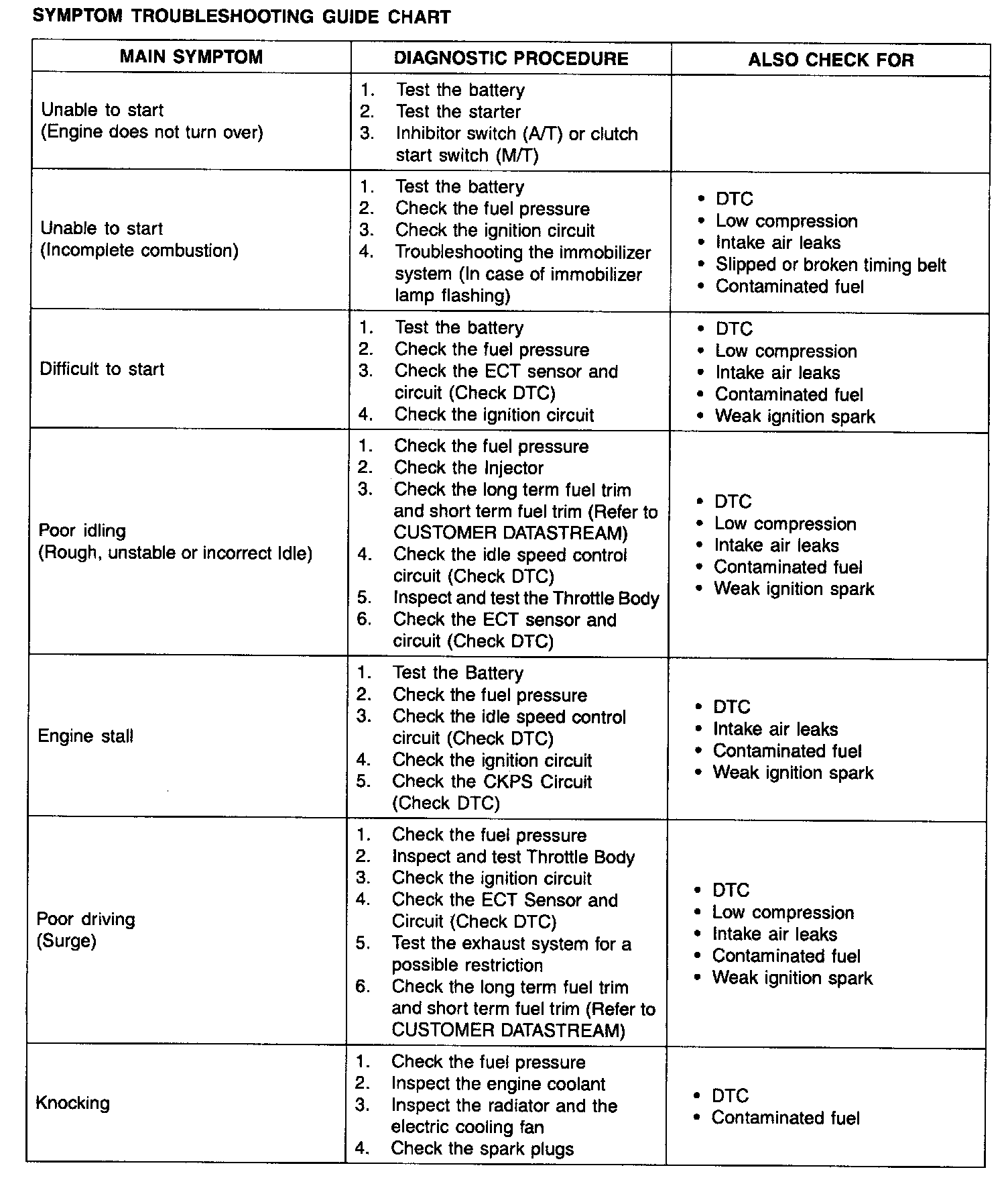 Symptom Troubleshooting Guide Chart Part 1: