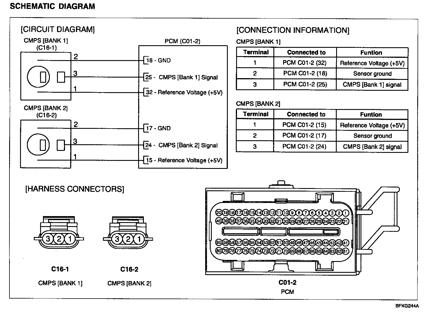 The two CMPS are installed on engine head cover of bank 1 and 2 and uses a target wheel installed on the camshaft. This sensor has a hall-effect IC which output voltage changes when magnetic field is made on the IC with current flow.
