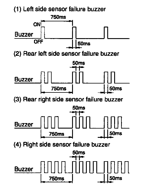 d. Right side sensor failure: beep beep beep beep- beep beep beep beep-beep beep beep beep
