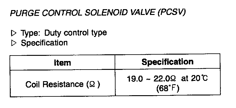 Purge Control Solenoid Valve (PCSV) - Specification: