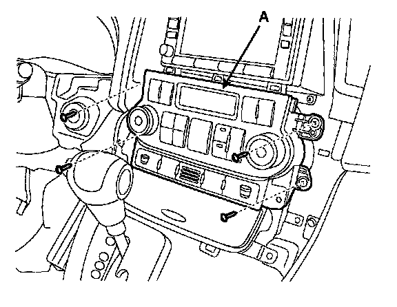 3. Remove the center facia panel switch and air control panel (A) after loosening screws.