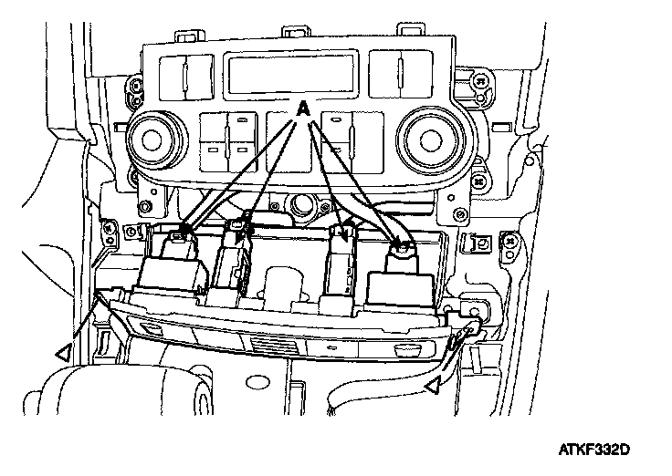 Remove the center facia panel (A) after loosening screws. Take care not to damage fixing clips.