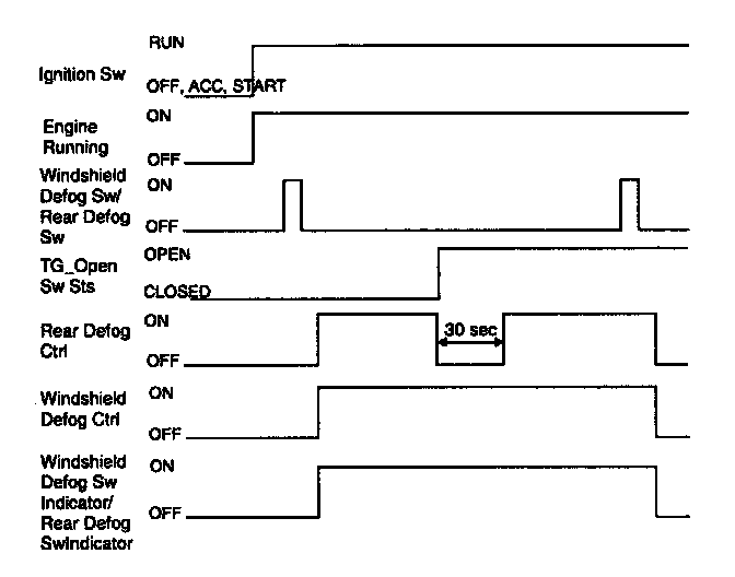 If the user turns on rear defog function while this pause is going on, rear defog is set to ON only at the end of the pause.