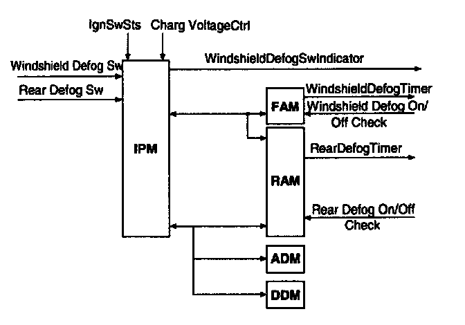 Rear defog works exactly in the same way as windshield defog using the Rear Defog Switch button as input.