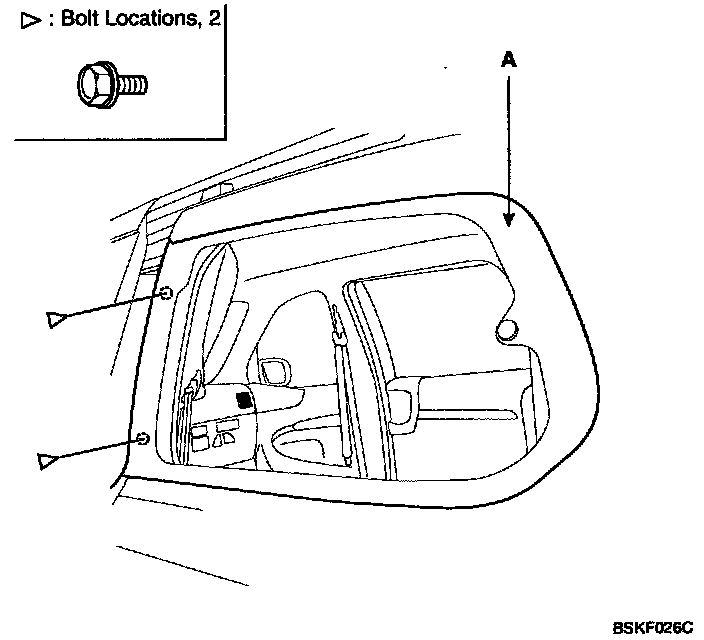 4. After loosening the quarter glass mounting bolts, then remove the quarter glass (A).