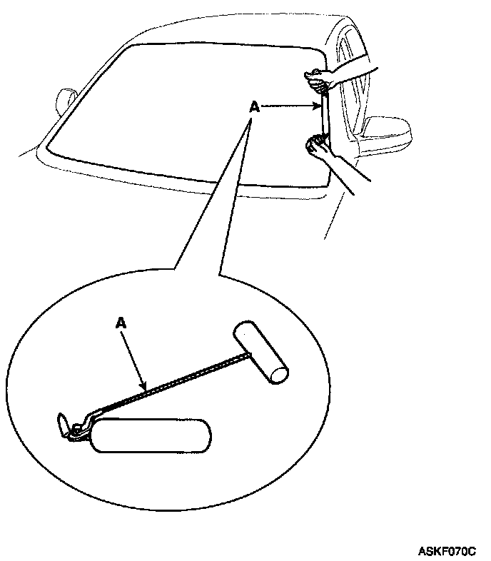 2. Remove the windshield glass side molding(A).