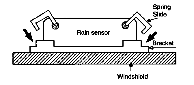 4. Rain sensor is fitted with 2 spring slides by clip type on the front glass, it can be replaced easily. When replacing the front glass, take away the rain sensor from the existing glass.