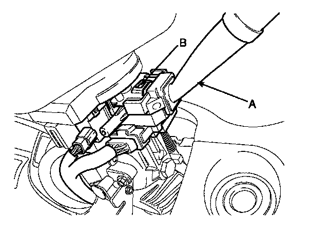 1. Remove the steering column upper and lower shrouds (A) after removing 3 screws.