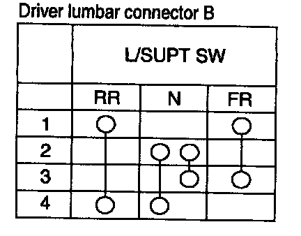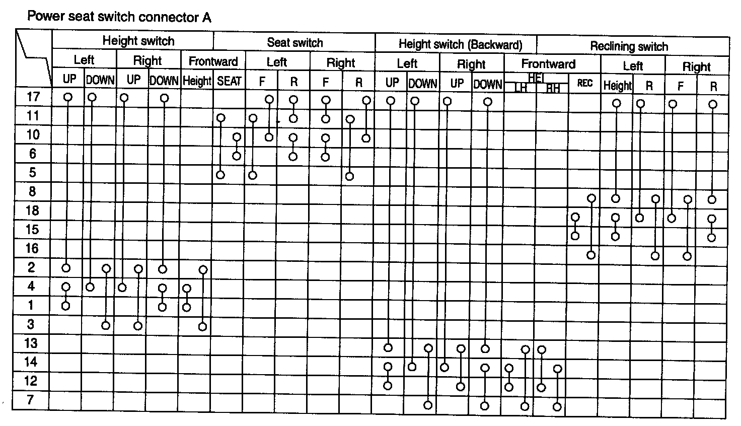 in each position, make sure that continuity exists between the terminals below. If continuity is not as specified, replace the power seat switch.