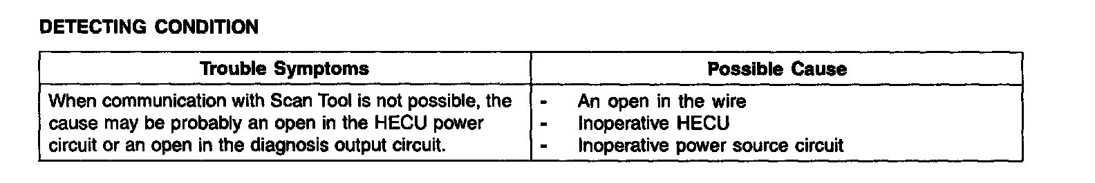 Communication with Scan Tool is not possible. (Communication with ABS only is not possible)DETECTING CONDITION