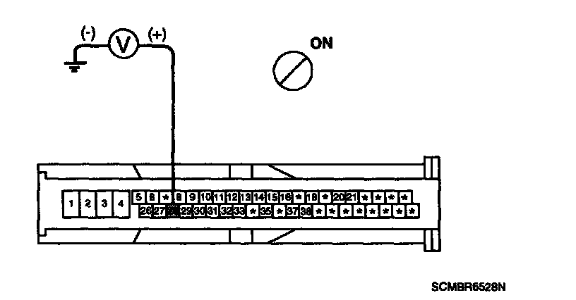 2. Turn the ignition switch ON, measure the voltage between terminal 28 of the ESC control module harness side connector and body ground.