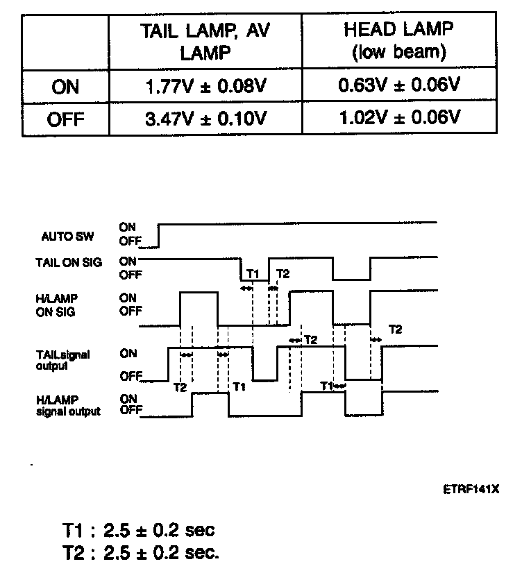 While operating the auto light switch, check it the operations are normal as shown in the timing chart.