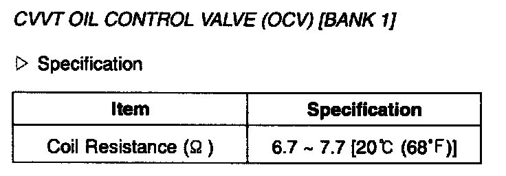 CVVT Oil Control Valve (OCV) [Bank 1] - Specification: