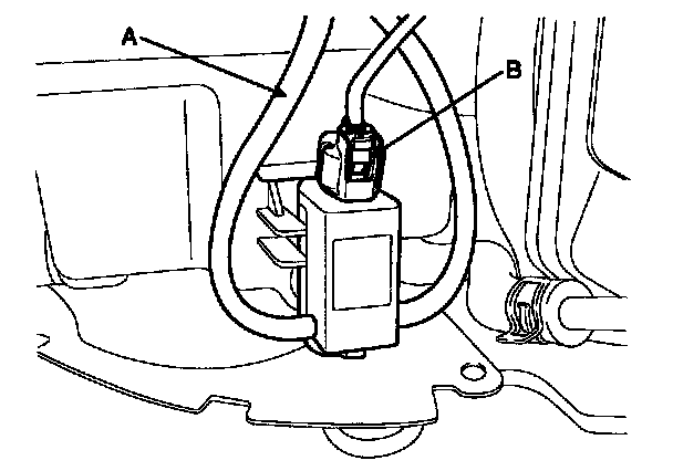 3. Remove the washer hose (A) and the washer motor connector (B).
