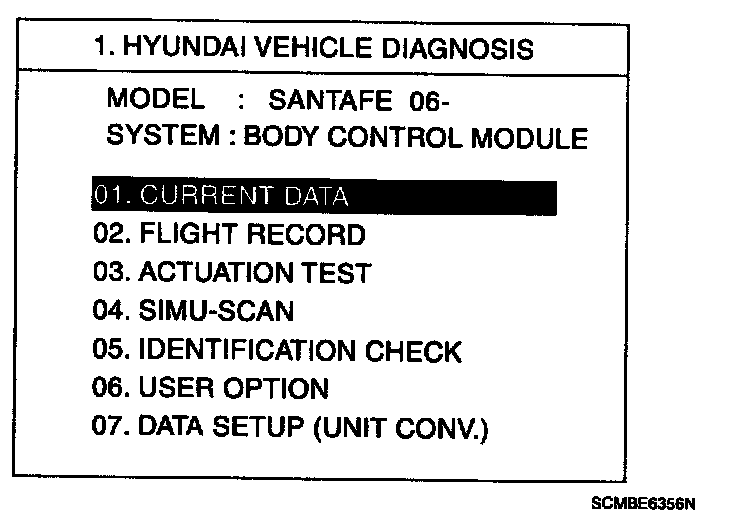 BCM DIAGNOSIS WITH SCAN TOOL1. It will be able to diagnose defects of BCM with scan tool quickly. Scan tool can operates actuator forcefully, input (output value monitoring and self diagnosis.