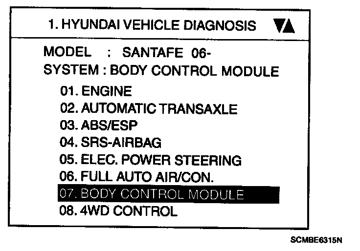 2. Select option "BODY CONTROL MODULE" and press ENTER.