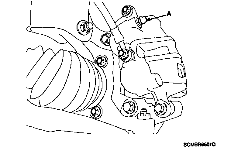 3. Loosen the right-rear brake bleed screw (A) to allow air to escape from the system. Then tighten the bleed screw securely.