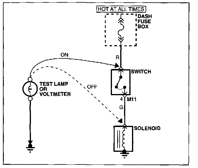 a. Connect one lead of a test lamp or voltmeter to a ground. If you are using a voltmeter, be sure it is the voltmeter's negative test lead you have connected to ground.