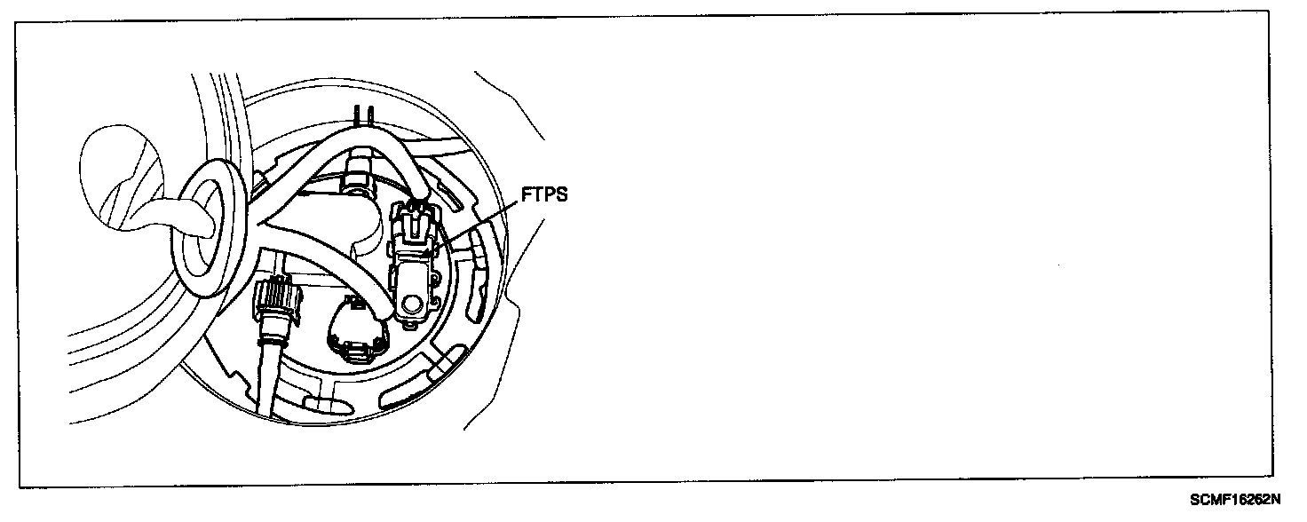 The evaporative emission control system prevents hydrocarbon vapors from escaping from the fuel tank into the atmosphere where they could form photochemical smog. Gasoline vapors are collected in the charcoal canister. The Fuel Tank Pressure Sensor (FTPS) is installed on fuel pump assembly and is an integral part of the evaporative monitoring system. The PCM monitors the FTPS signal to detect vacuum decay and excess vacuum. The FTPS measures the difference between the air pressure inside the fuel tank and atmospheric air pressure to check the purge control solenoid valve operation and for leak detection in the evaporative emission control system by monitoring pressure and vacuum levels in the fuel tank during the purge control solenoid valve operating cycles.