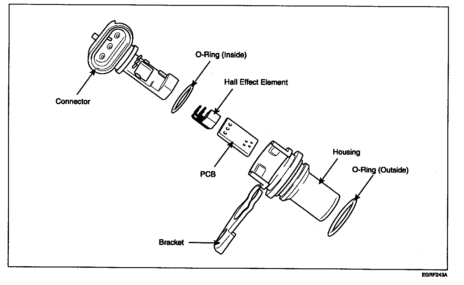 Camshaft Position Sensor (CMPS) is a hall sensor and detects the camshaft position by using a hall element. It is related with Crankshaft Position Sensor (CKPS) and detects the piston position of each cylinder which the CKPS can't detect. The two CMPS are installed on engine head cover of bank 1 and 2 and uses a target wheel installed on the camshaft. This sensor has a hall-effect IC which output voltage changes when magnetic field is made on the IC with current flow.