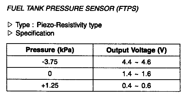 Fuel Tank Pressure Sensor (FTPS) - Specification: