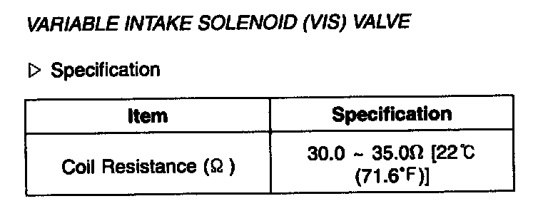 Variable Intake Solenoid (VIS) Valve - Specification: