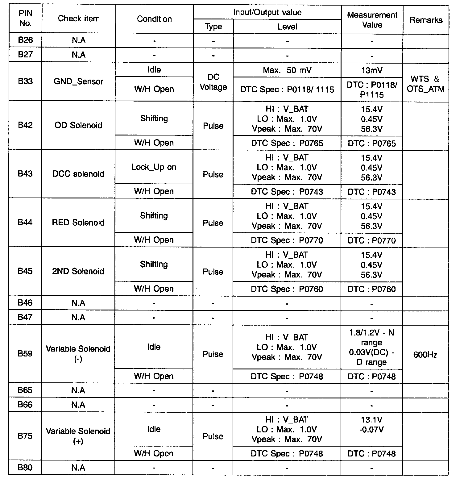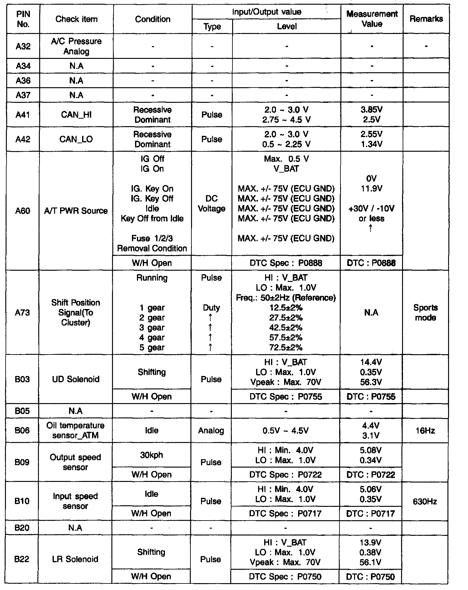 INPUT/OUTPUT SIGNAL VOLTAGE CHECK SHEET: