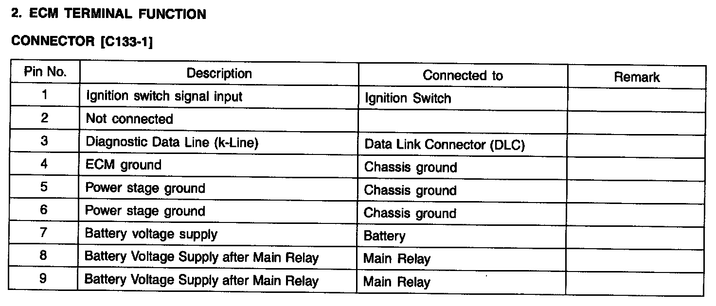 ECM TERMINAL FUNCTION - CONNECTOR [C133 -2]