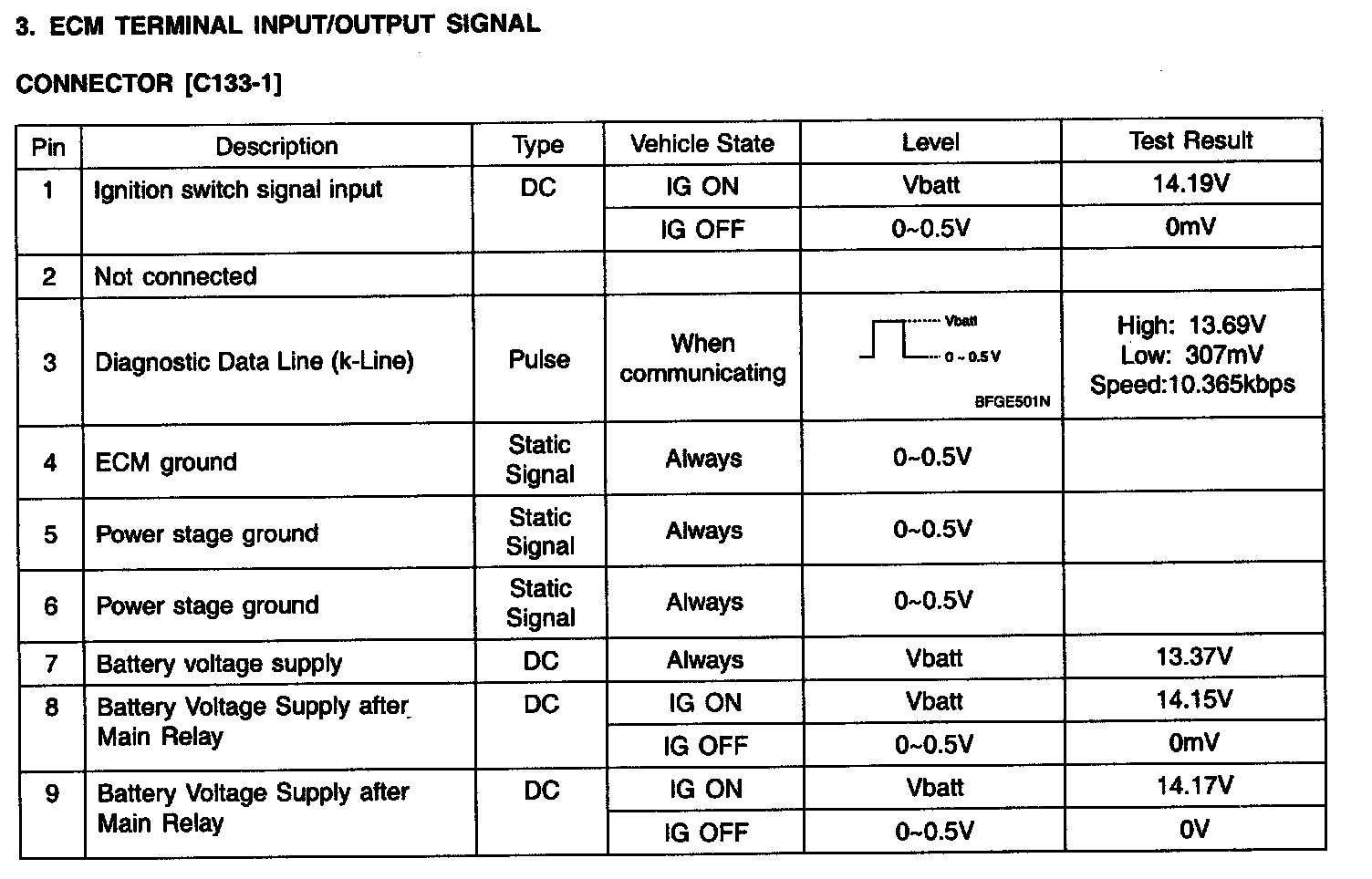 ECM Terminal Input/Output Signal - Connector [C133-1]: