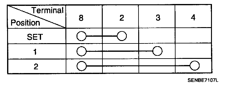 2. With the power IMS control switch in each position, make sure that continuity exists between the terminals above. If continuity is not as specified, replace the IMS control switch.