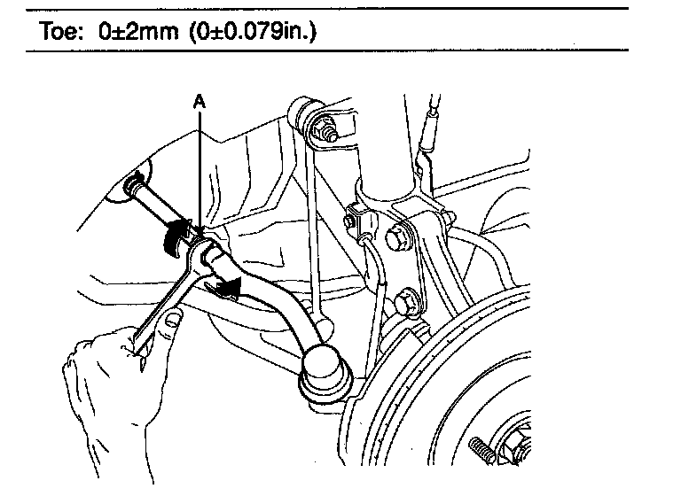 3. Adjust the toe by screwing or unscrewing the tie rod. Toe adjustment should be made by turning the right and left tie rods by the same amount.