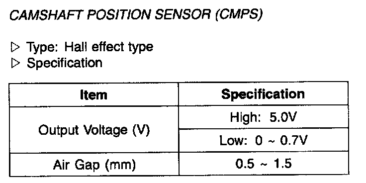 Camshaft Position Sensor(CMPS) - Specification: