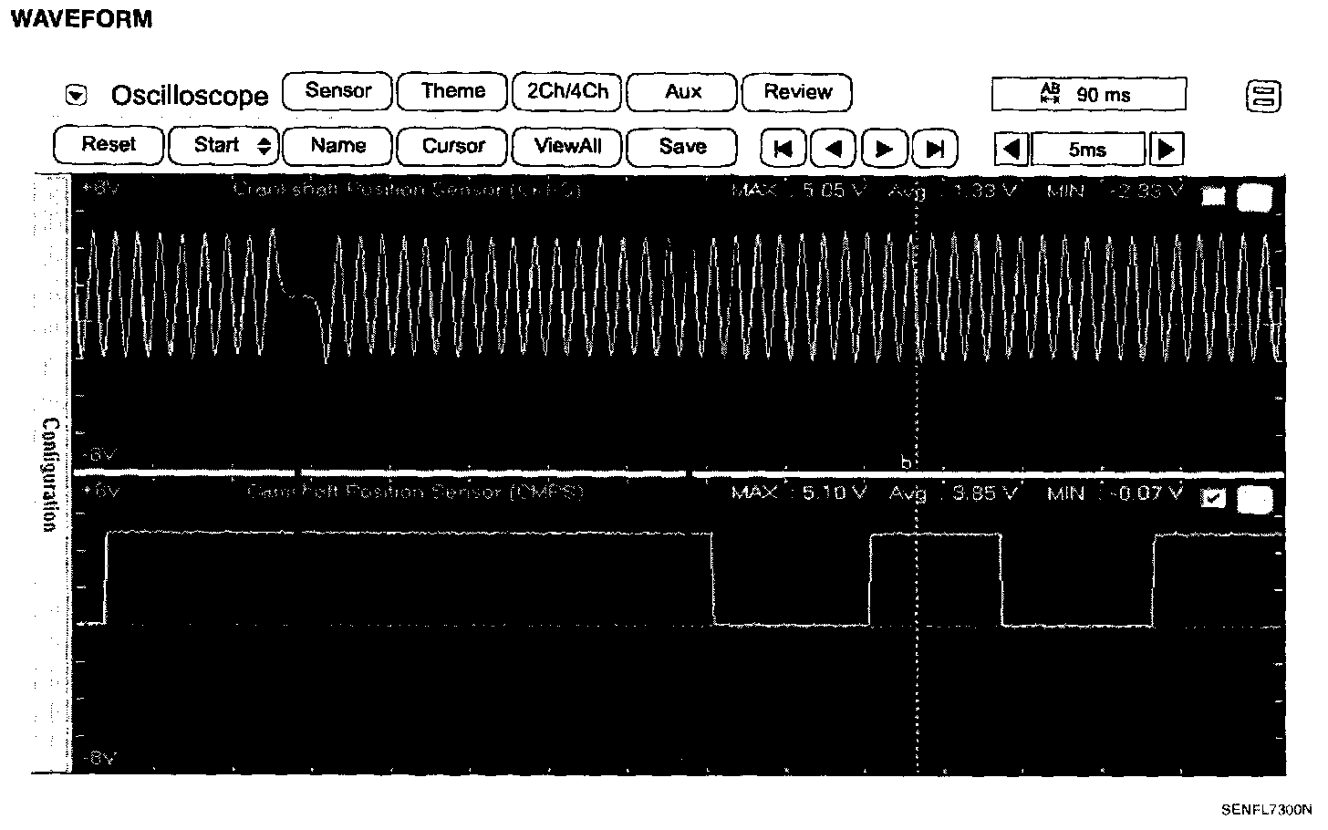 1. Check signal waveform of CMPS and CKPS using a scantool.
