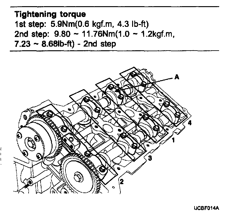 CVVT & exhaust cam sprocket bolt 64.68-76.44 Nm (6.6-7.8 kgf.m, 47.74-56.42 ft. lbs.)