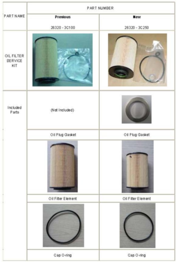 ^ The previous engine oil filter (P/N 26320-3C100) is NOT interchangeable with the new filter (P/N 26320-3C250).