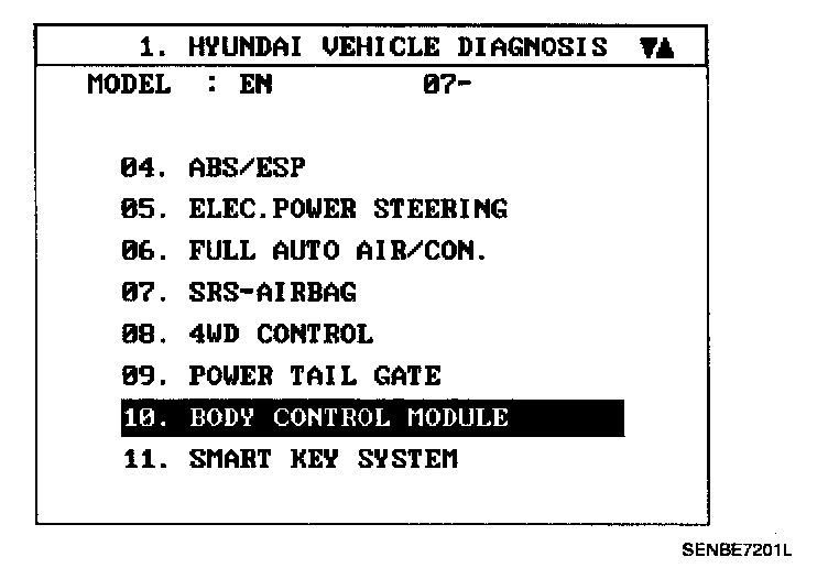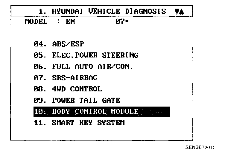 1. When checking the anti pinch strip operation, select a vehicle type and "BODY CONTROL MODULE" menu.