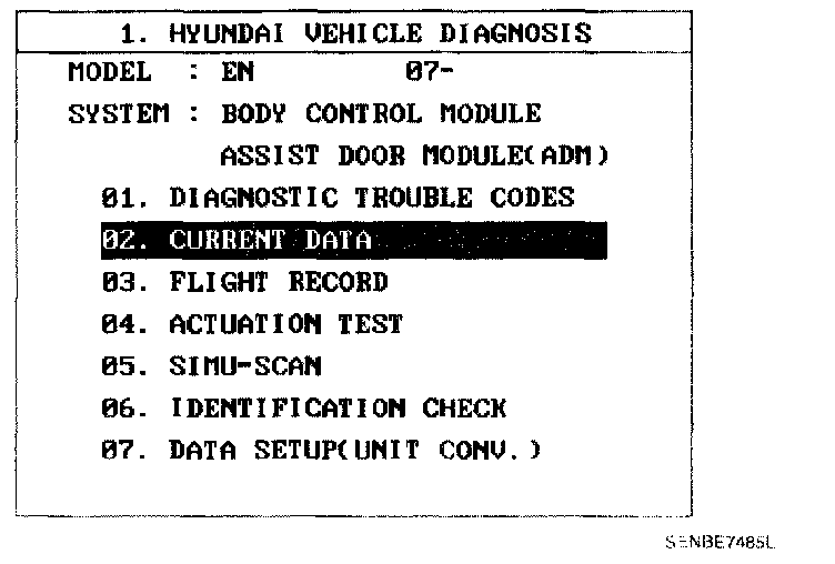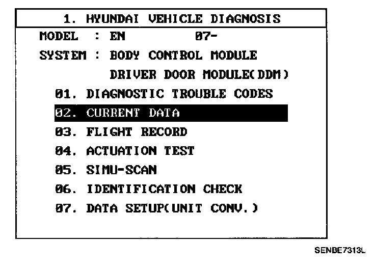 3. Select option "CURRENT DATA".