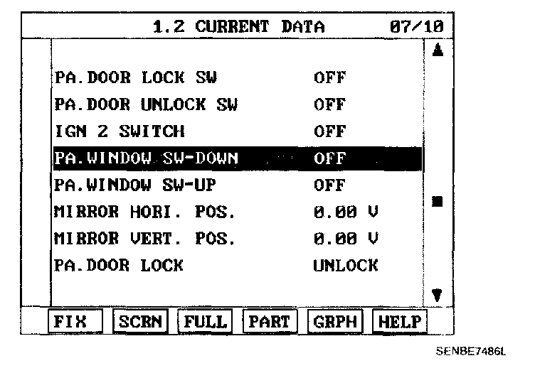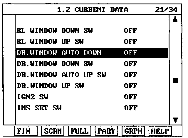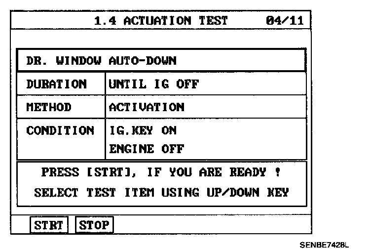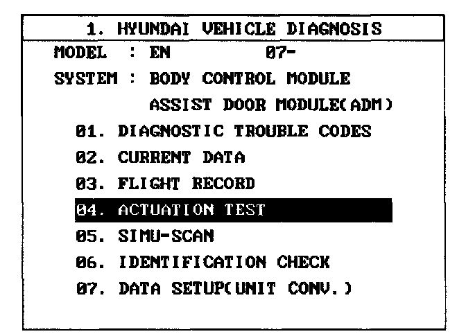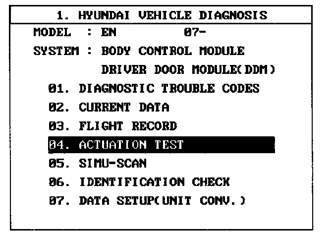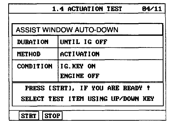 4. To check the input value of power window switch in force mode, select option "ACTUATION TEST".