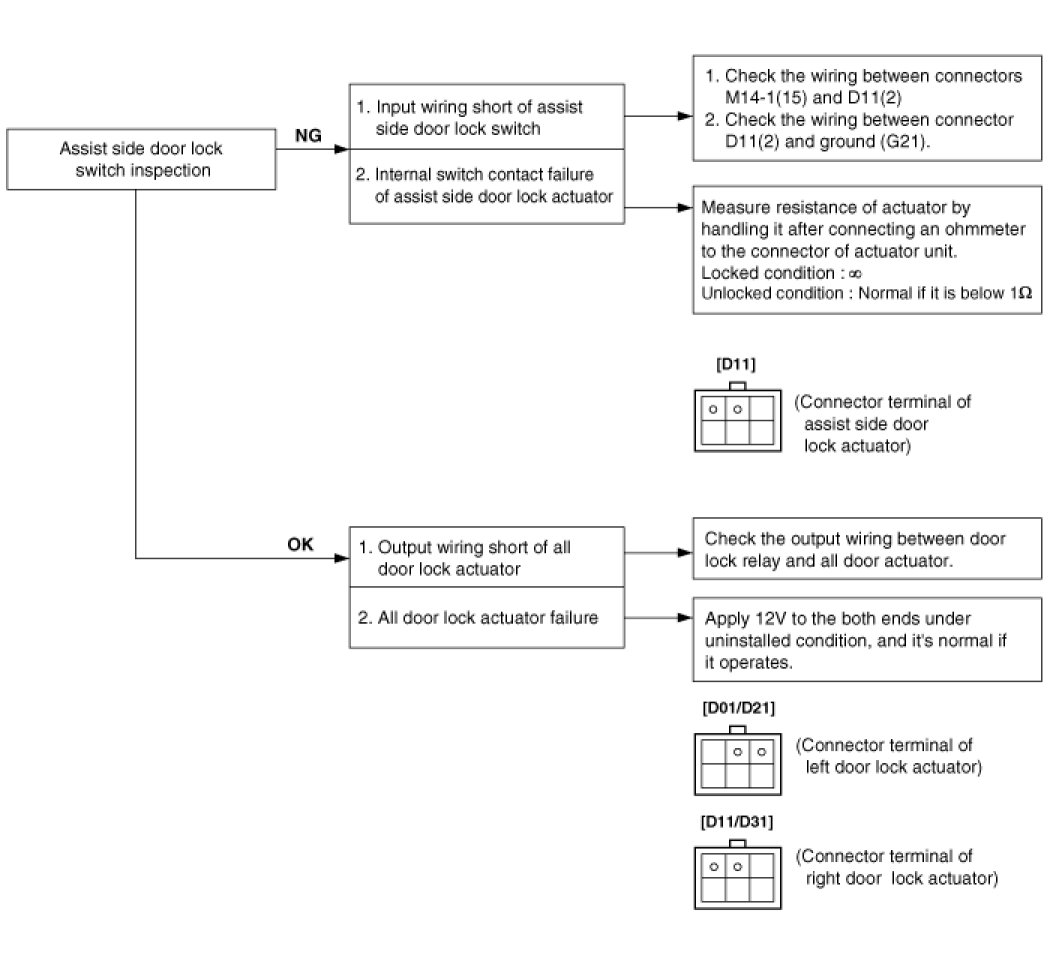 1. Lock function works but unlock function does not work. -> Since door unlock relay is malfunction, replace the door unlock relay.