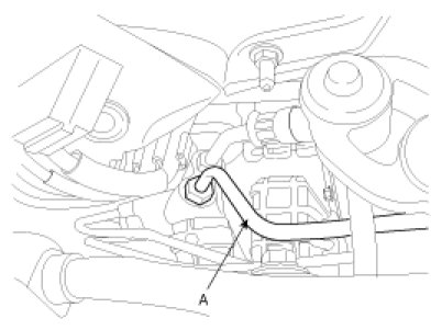 1. Drain the power steering fluid by disconnecting the return hose (A).