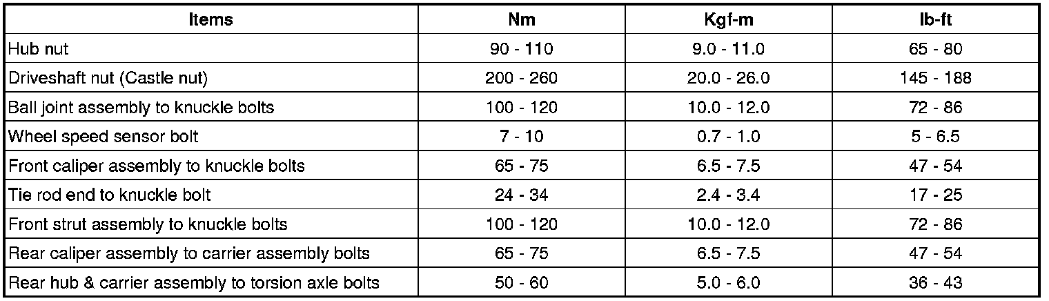 TIGHTENING TORQUES