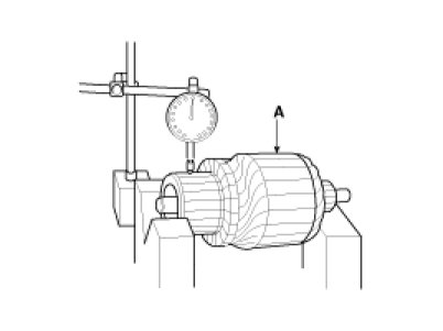 5. Check the commutator diameter. If the diameter is below the service limit, replace the armature.