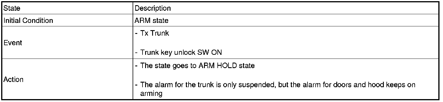 3. In ARM mode, signal by TRUNK RELEASE SW input is not output.