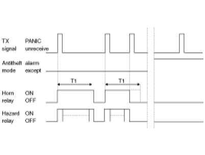 1. PANIC alarm is turned ON for T1 by using HORN and HAZARD if TPANIC signal is received.