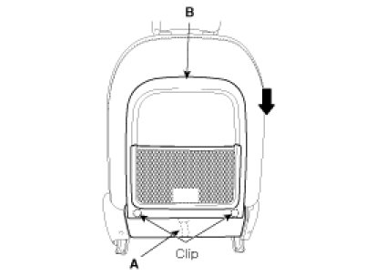 7. After removing the tape on the front of seat back remove the seat back cover (B).