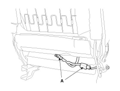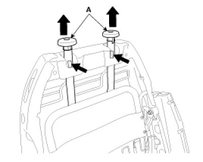 3. After disconnecting the scuff band (A), remove the seat back panel (B).