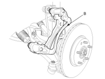 1. Remove guide rod bolt (B) and raise the caliper assembly (A).