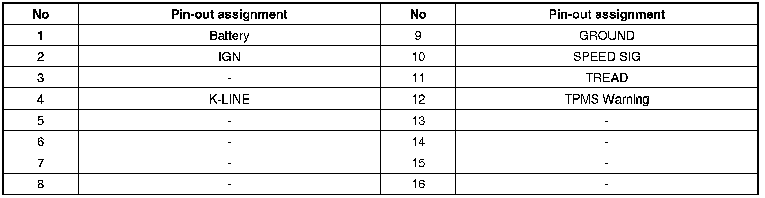 Tire Pressure Monitoring System (TPMS) Connector Pin Outs: