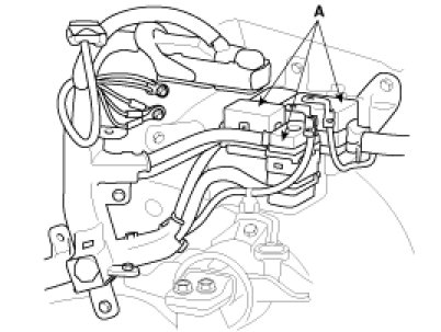 7. Remove the engine wire harness connectors(A) and wire harness clamps from the engine room fuse and relay junction box.