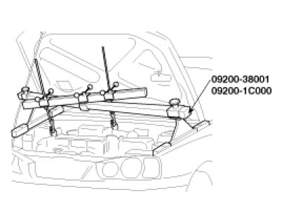 15. Install the SST (09200-38001, 09200-1C000), the engine support fixture and the adapter, on the engine and transaxle assembly.